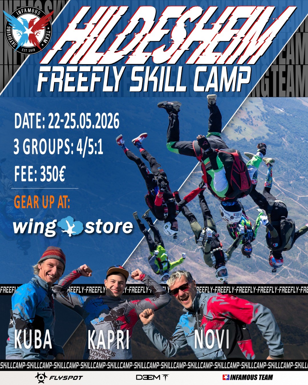 Das Infamous Skydiving Team wird auch in 2026 ein Skillcamp bei SkyDive-Hildesheim veranstalten.